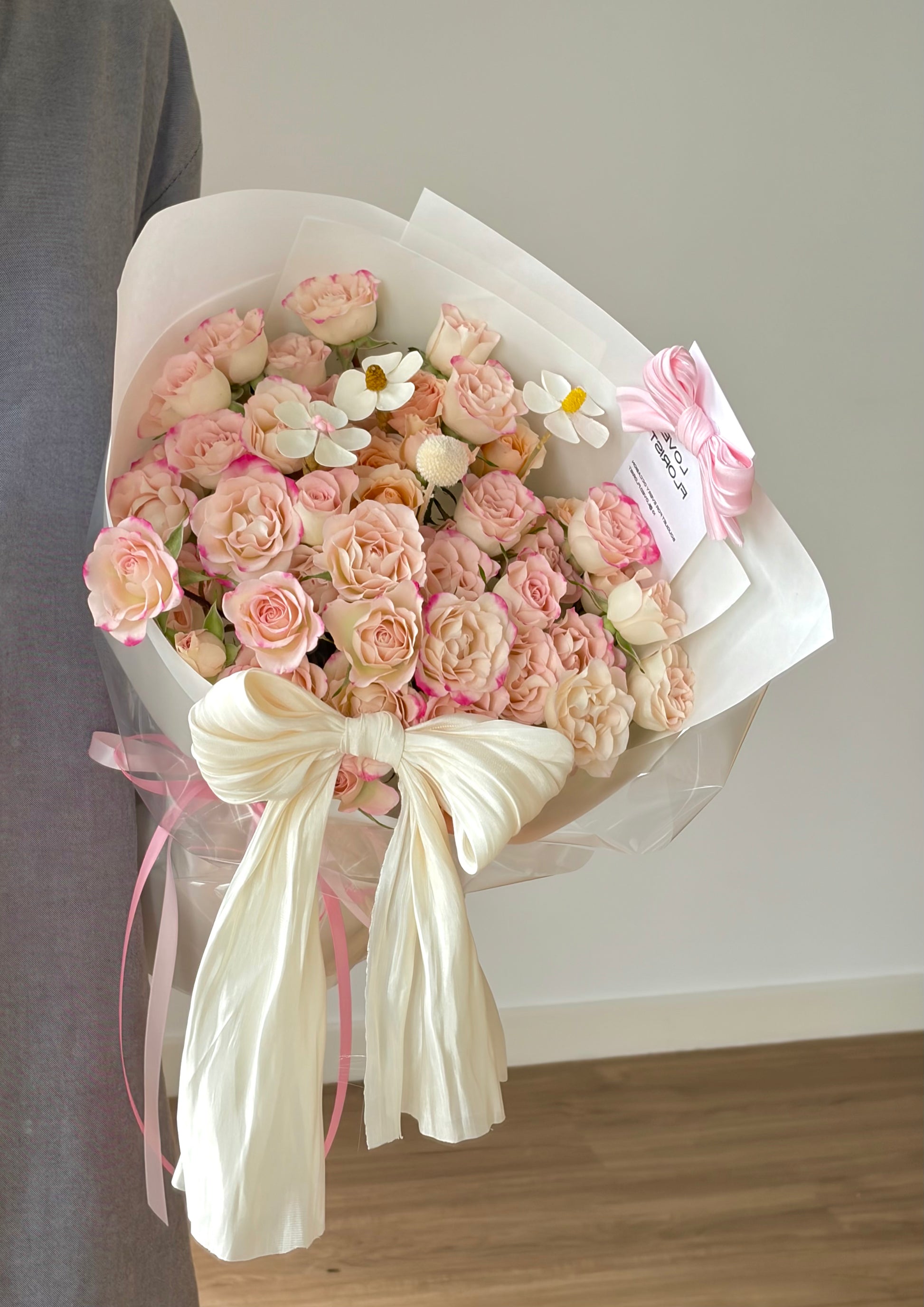 Flowers are seasonal, substitutions may be made with the best available blooms ( pink kenya mini rose )