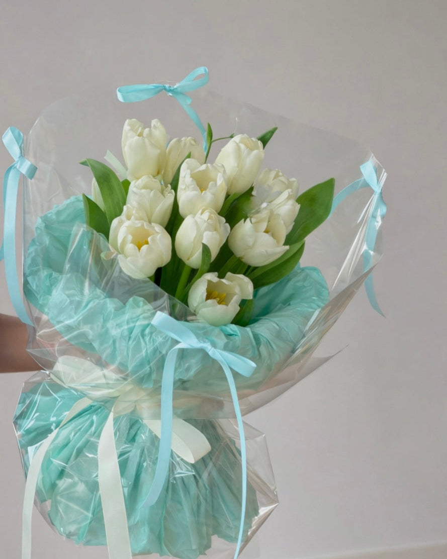 9-10 stems of White Tulips